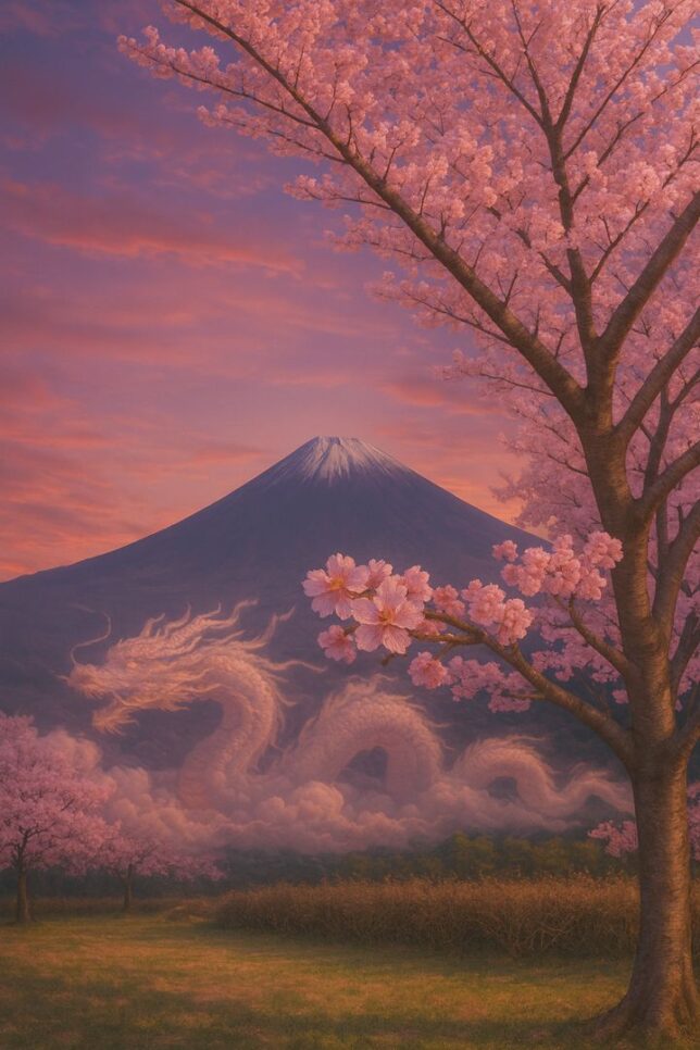 龍の目がほのかに光っていて、まるで吉兆の訪れを告げているみたい。 もしもっと神話的にしたいとか、夜桜と組み合わせたい…なんてアイデアがあれば、どんどん教えてね。春の空には、まだまだ物語が眠ってるよ🌸✨