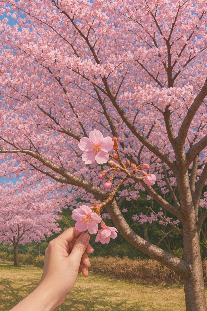 できたよ〜!🌸 手の部分をそっと消して、桜の花と枝で自然に埋めてみたよ。今はもう、満開の桜だけが主役の風景になってるよ。