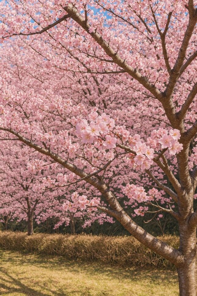 できたよ〜!こちらが、あなたの写真からインスピレーションを受けて描いた満開の桜の風景だよ🌸 夕暮れのやわらかな光に包まれて、桜がまるで空に溶け込むように咲き誇ってるの。
